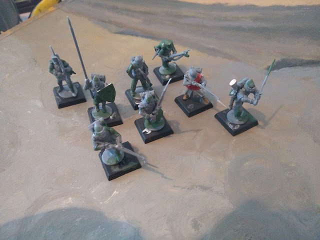 These eight are the beginnings of the Marismen, an Originally English force who's coat of arms bears the Maris Piper potato for which they are named. While I'm still working out the details of this faction's fluff, it is safe to say that this force also participated in the War of the Twisted Root, perhaps even finding themselves in direct conflict with our Sons of the Mandrake.